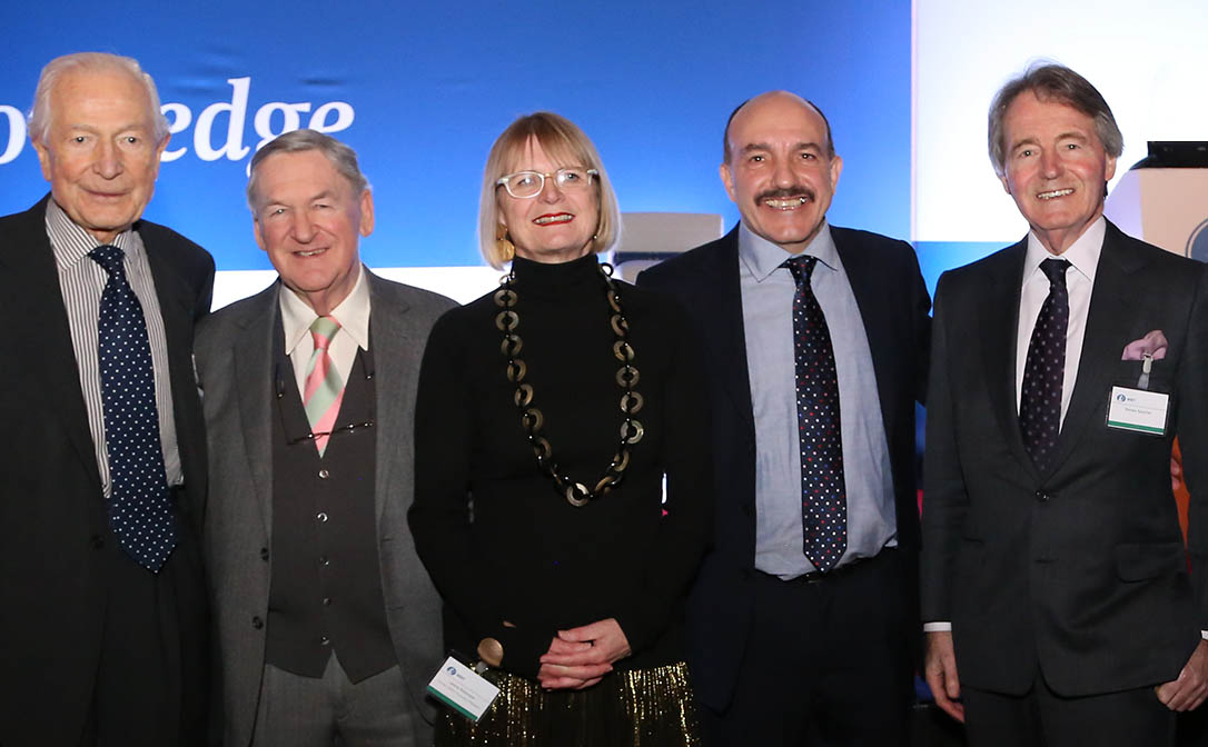 WSET's Honorary Presidents, past and present. (Left to right: Michael Broadbent, Hugh Johnson, Jancis Robinson, Gerard Basset and Steven Spurrier)