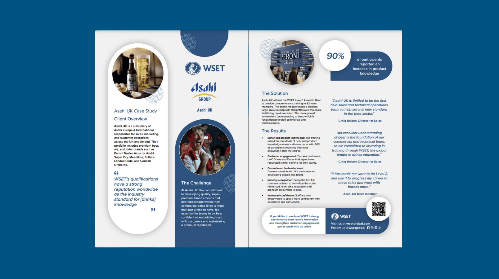 Asahi UK utilised the WSET Level 1 Award in Beer to provide comprehensive training to 82 team members. The online module enabled efficient large-scale training with straightforward materials, facilitating rapid execution. The team gained an excellent understanding of beer, which is fundamental to their commercial and technical roles.